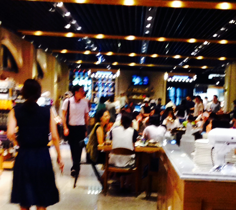 Celebrity sighting at lunch today. Lee Young-Ae from the international hit Korean drama, “Dae Jang Geum”, seen eating a beef omerice at a fancy mall food court. With husband (a beast, truly) and friend. I desperately wanted to take a photo of her face but could only capture her back (she’s wearing a white blouse with black sleeves) . She was as flawlessly beautiful in person as she appears on the screen. Exceptionally beautiful. As for her husband, of course, I think he’s a beast for pimping her out to Kim Jong Il in exchange for large sums of money. And who knows about the “love child” with the former dictator? Scandalous. It’s not an accident that the link to the Joongangilbo Daily stories about this cannot be found online.