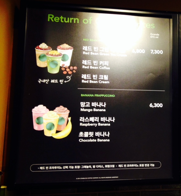 On Day 22, I caved and went to a Korean Starbucks. And boy was I glad I did. They didn’t just offer Frappuccinos. They served RED BEAN COFFEE Frappuccino with an extra shot of espresso. Wow. It’s a good thing I didn’t discover this delicious, frothy drink earlier. (It’s not a good photo but Korean shopkeepers don’t allow photos inside any restaurants or shops so I had to move quickly.)